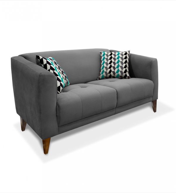 Love Seat ENNI en Tela Gris Oxford Diseño Clásico Contemporáneo