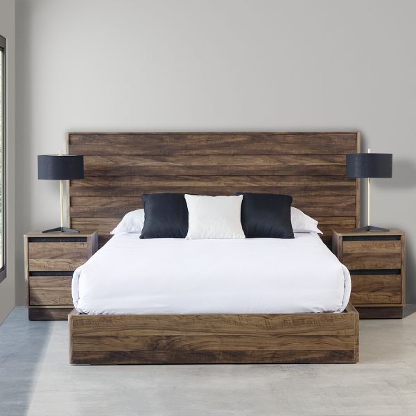 Renueva tu espacio con la Recámara Britania, un conjunto de diseño sofisticado que eleva la estética de cualquier dormitorio. Su acabado en color nogal y líneas contemporáneas aportan calidez y estilo, ideal para quienes buscan un ambiente moderno y acogedor. Puedes adaptarla a tamaño Queen Size.